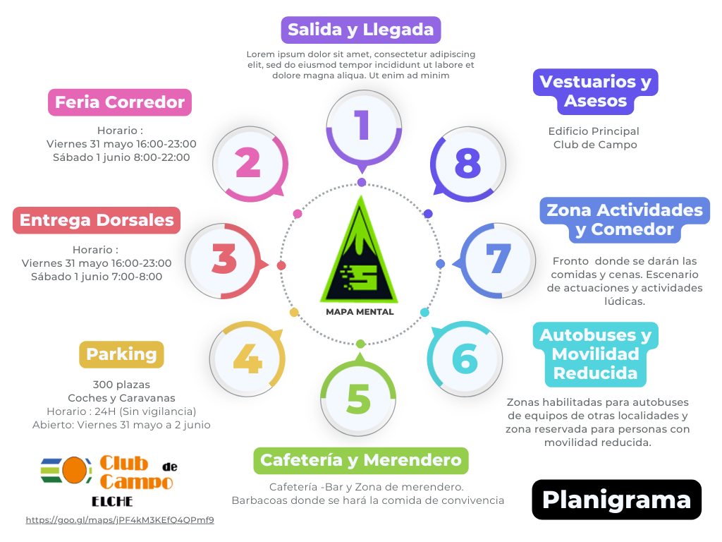 En el Planigrama podemos ver la distribución de espacios y horarios de los mismos para los días del evento.